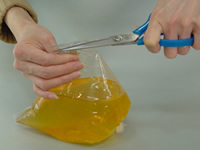 袋の角の部分を上にしてハサミで切ります。